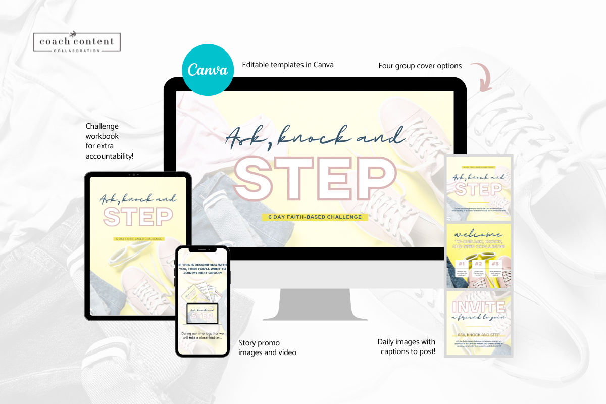 There are daily caption posts, daily images, cover images, story invite images and a group guide. You can use this as additional value to your current accountability group, as a free challenge to expand your network or run as a secret conversion challenge to convert prospects over to your paid program or paid coach membership.