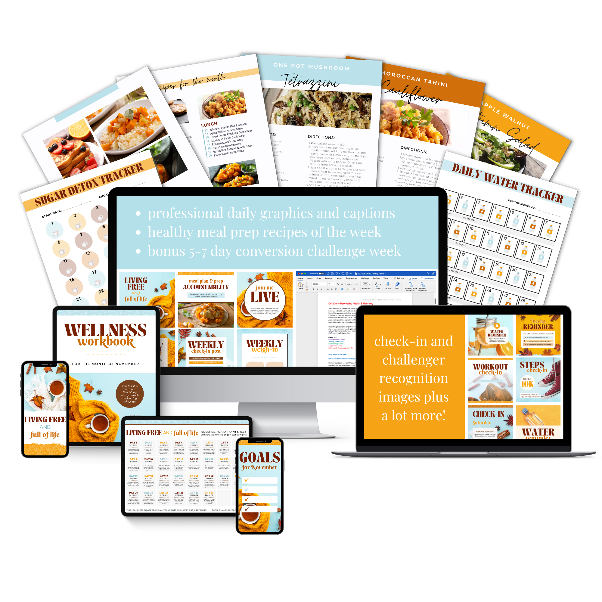 We LOVE creating more time and space for all kinds of wellness coaches! We provide daily content to post, images created in Canva that you can customize to your own branding, workbooks and trackers so your group can stay on track, recipes, calendars, and so much more!