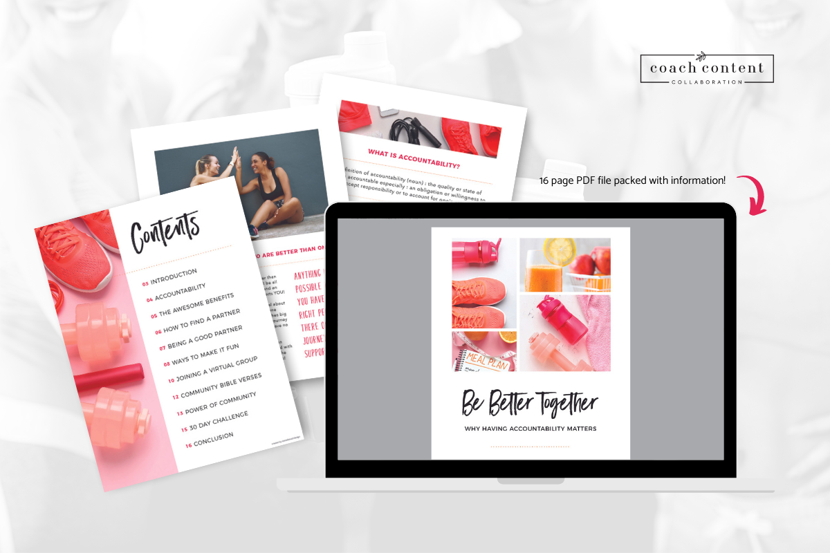 A digital file that you can use as a freemium with email or client sign-up or even just as a great additional resource for your challenge groups. This guide is great for helping your potential and future clients to understand the power of community and why having accountability & support is so important to help them reach their goals. Great for those who are NOT yet in your groups! This has FAITH-BASED blurbs & some Bible Verses.