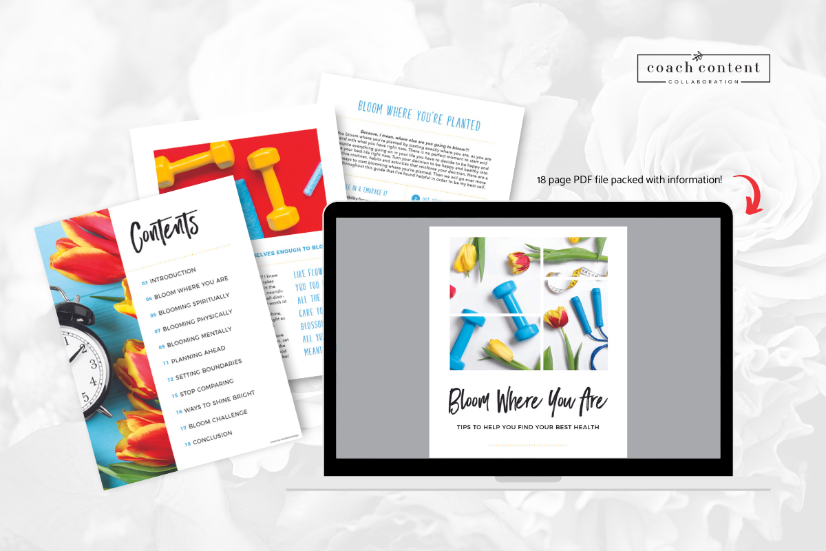 A digital file that you can use as a freemium with email or client sign-up or even just as a great additional resource for your challenge groups. Another important tool for challengers to succeed on their health & fitness journey is also by understanding the vital importance of blooming right where they're at, as they are in this moment! There are no perfect conditions or the "right" time!