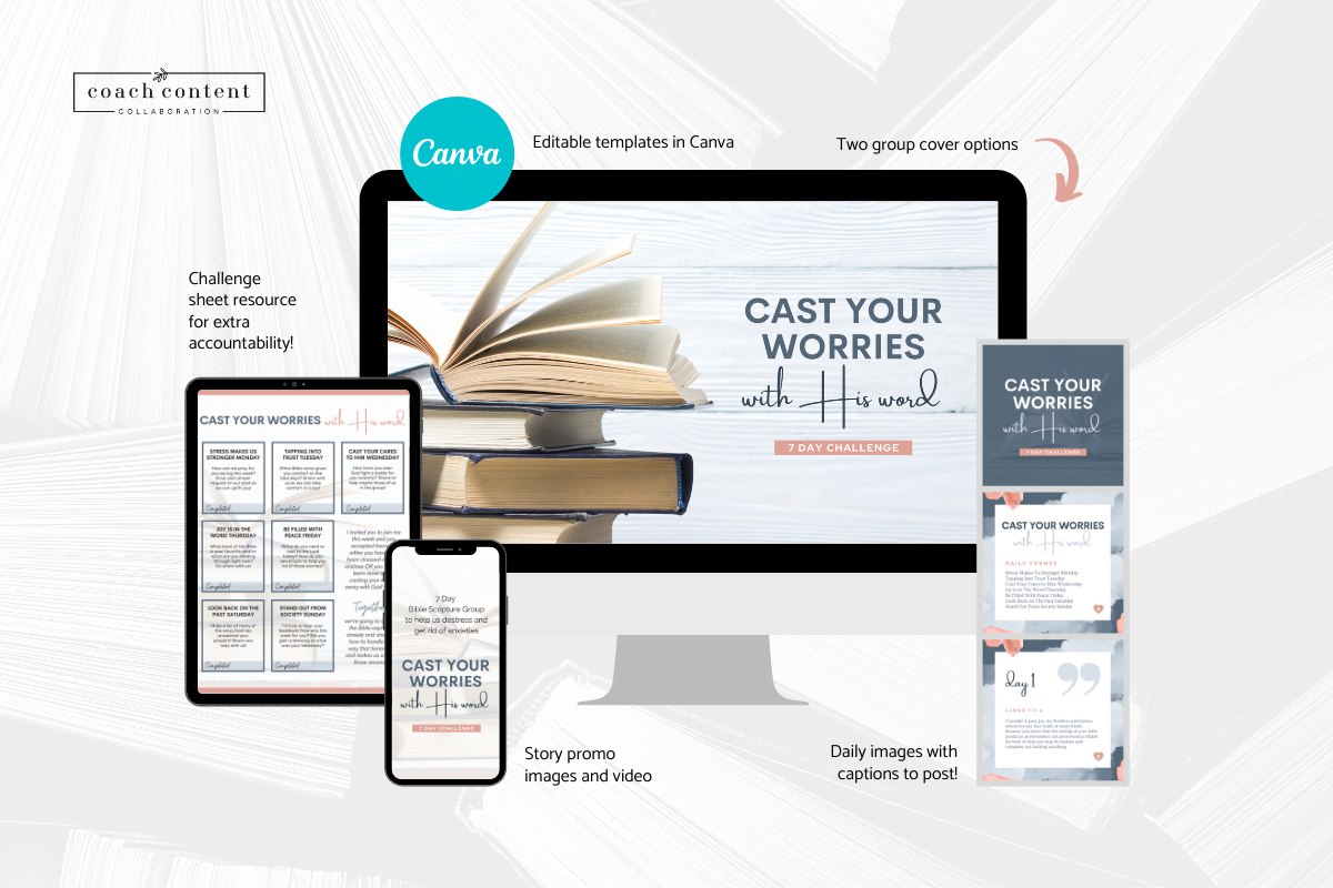 Would you like to help your challengers ease any anxiety and overwhelm through God's Word? Then this is the group for you! For 7 Days, we're going to see what the Bible says about anxiety and stress and how to handle it in a way that honors God and makes us a light to those around us.