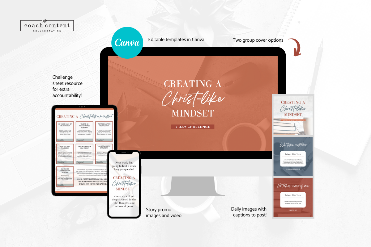 Would you like to help yourself and your clients experience a transforming and renewing of your mind? What about learning how to live more like the Lord? In this 7 day challenge group you will have a daily verse and topic that helps to change how we think, what we think, increase faith and believe we're worthy of great things.