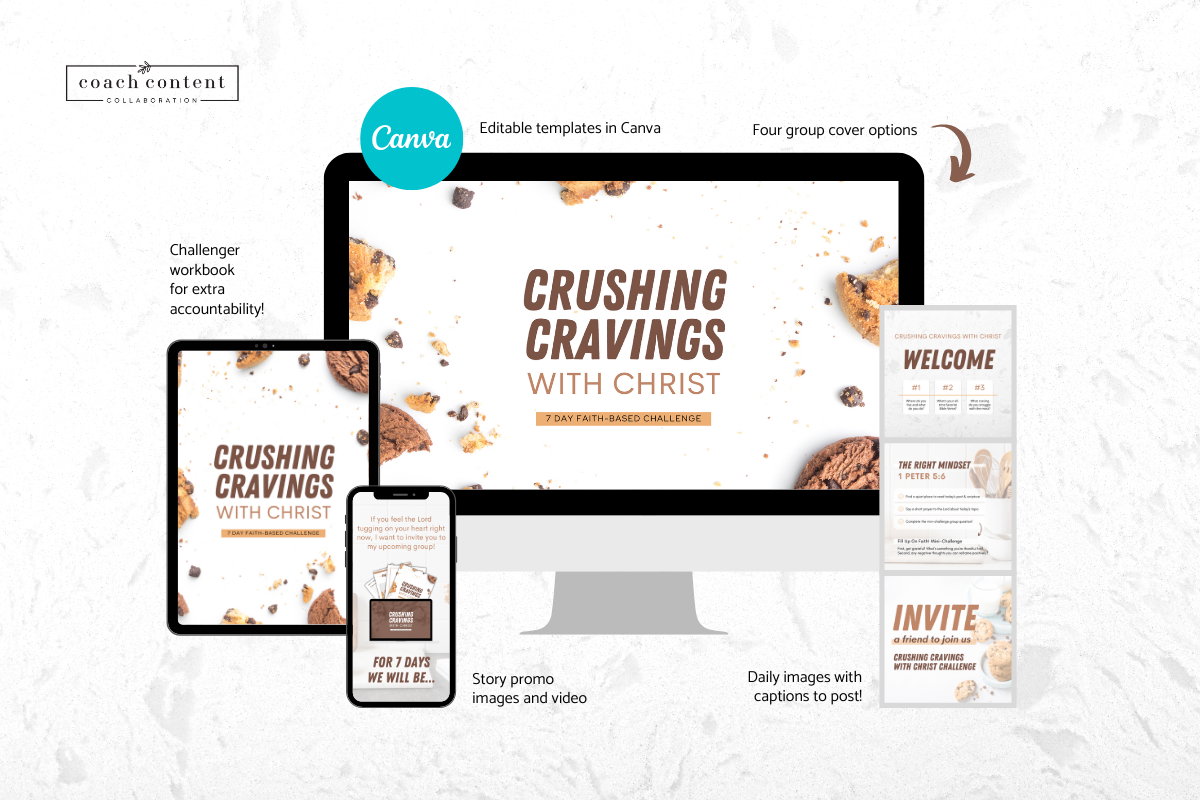 With this 7 day done-for-you faith-based challenge group guide you will help your clients learn why we emotionally eat, how to turn to Jesus when we want to, practicing self-discipline, having accountability and so much more!