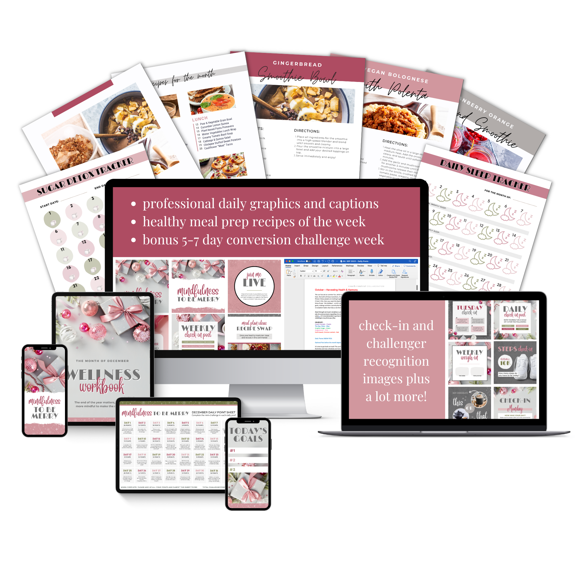 We LOVE creating more time and space for all kinds of wellness coaches! We provide daily content to post, images created in Canva that you can customize to your own branding, workbooks and trackers so your group can stay on track, recipes, calendars, and so much more!