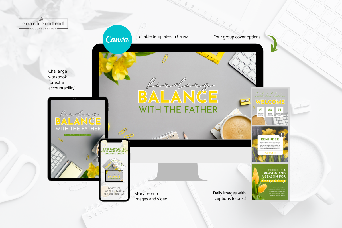 With this 7 day done-for-you faith-based challenge group guide will help you and your clients talk about why we need to seek God first, why looking to the future helps us stay balanced in the present, remembering to take rest, and so much more!