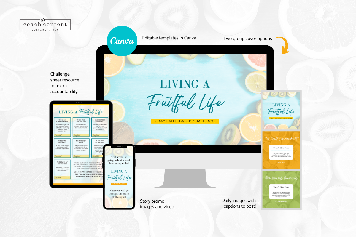 Would you like to help yourself and your clients go through the fruits of the spirit and learn how to apply them on your journey? In this 7 day challenge group you will have a daily verse and topic that helps us to know how to apply love, joy, peace and so forth to ourselves. Once we do that, it can have a transformative effect on those around us!