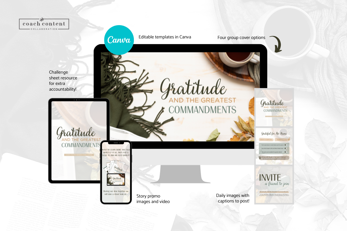 With this 6 day done-for-you faith-based challenge group guide will help you and your clients talk about how to to discover new things on their Christian walk to be grateful for, how to have gratitude in the highs & lows of life, how to love the unlovable, and more!