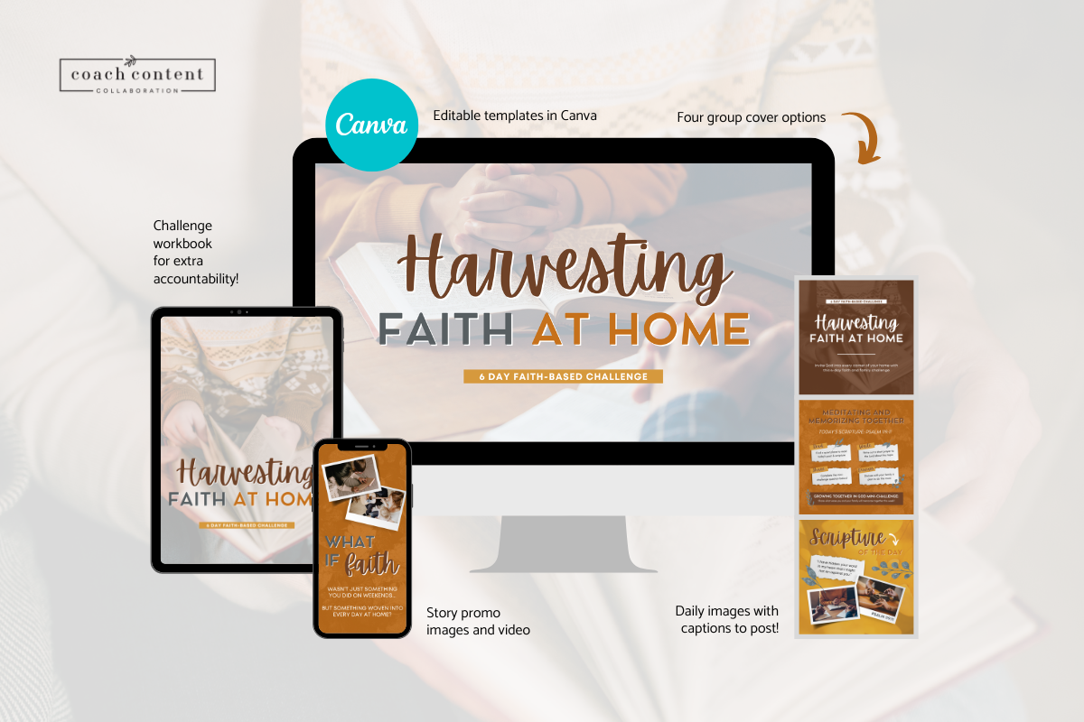 This 6-day done-for-you faith-based challenge group guide will help you and your clients cultivate a faith-filled home. Through practical daily prompts, scripture reflections, and simple family activities, participants will learn to bring God into their everyday routines, strengthen their family bonds, and grow together in faith. They’ll be encouraged to worship, pray, serve, and spend intentional time as a family, creating a home rooted in His truth and love. It’s an easy-to-run, heart-building challenge to inspire households to walk closer with God, together.