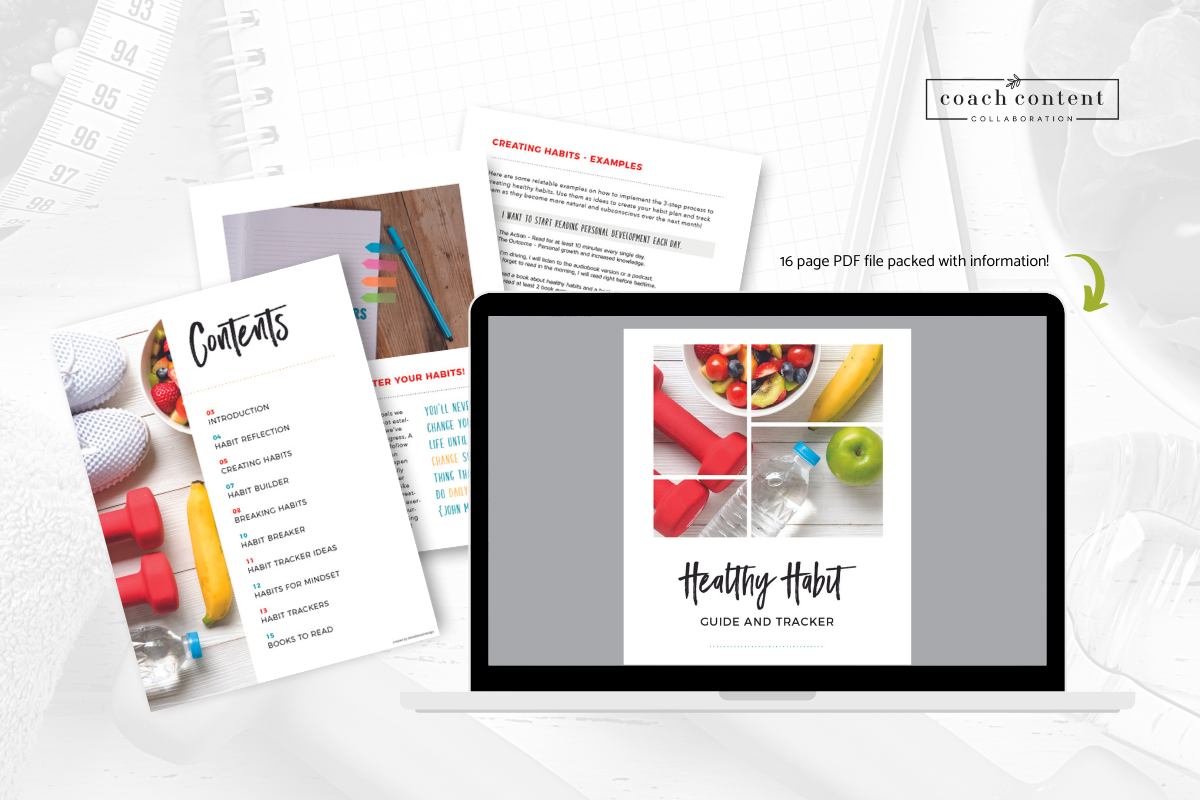 A digital file that you can use as a freemium with email or client sign-up or even just as a great additional resource for your challenge groups. Another important tool for challengers to succeed on their health & fitness journey is also by understanding the process of creating & breaking habits! Encourage your challengers to start tracking their habits to reach their goals.