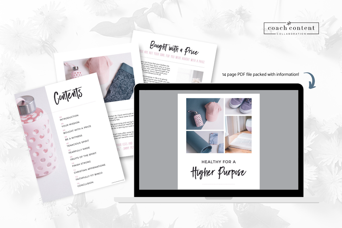 A digital file that you can use as a freemium with email or client sign-up or even just as a great additional resource for your challenge groups. Share the most important reason for becoming a fitter, healthier you! Challengers will be encouraged to embrace the gift of their bodies (the Lord's temple), better their ability to spread the fruits of the Spirit and gain a closer relationship with God through glorifying Him with their bodies.