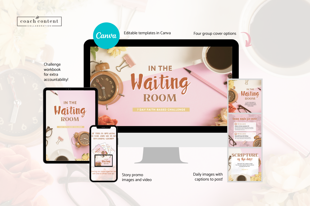 This 7-day done-for-you faith-based challenge group guide will help you and your clients find purpose and peace in seasons of waiting. Through scripture, prayer, and reflection, participants will learn to trust God’s timing, grow stronger in faith, and discover what He is doing behind the scenes. They’ll be encouraged to wait well, find hope in the pause, and rest in His promises with confidence and calm. It’s a simple, heart-strengthening way to deepen spiritual growth and walk faithfully through every waiting season.