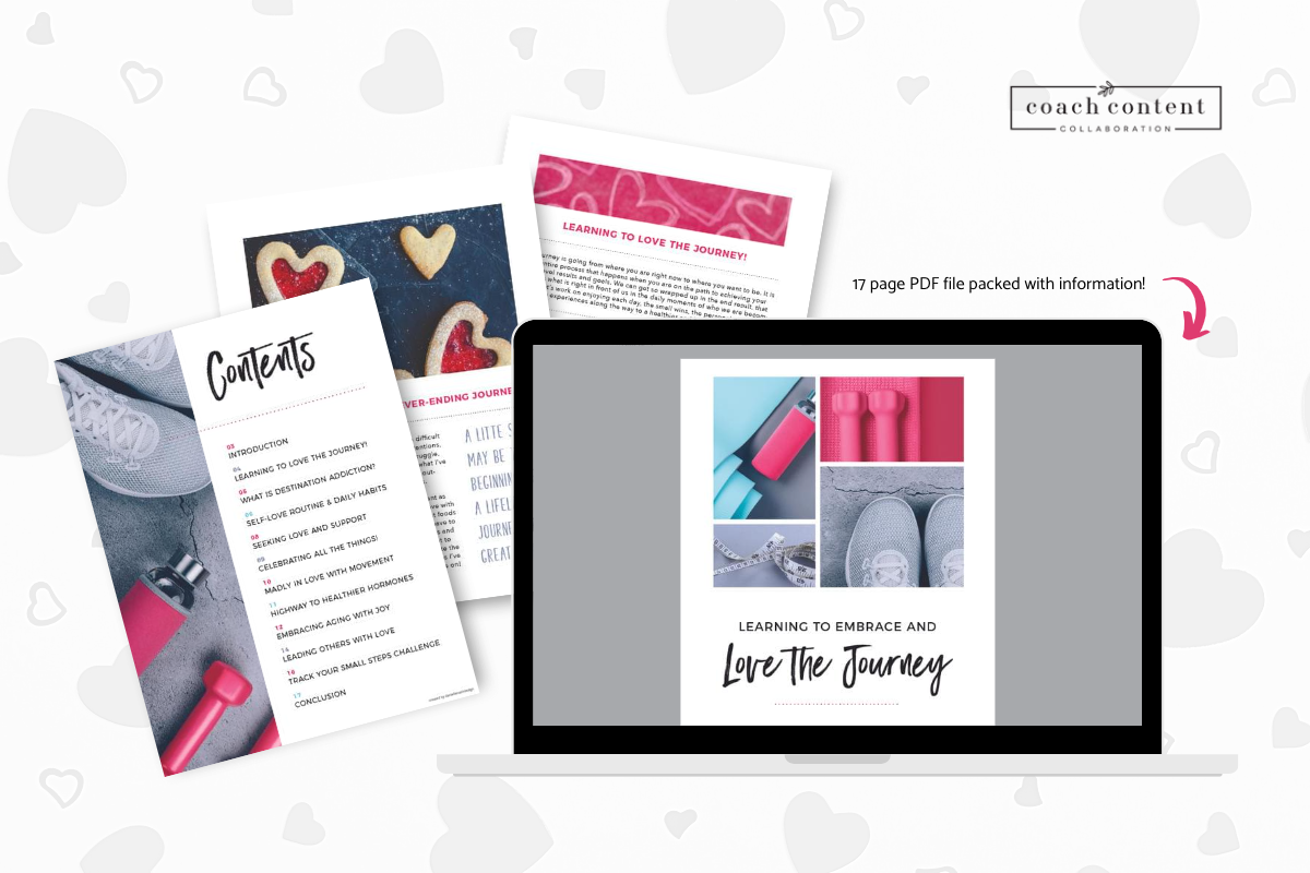 A digital file that you can use as a freemium with email or client sign-up or even just as a great additional resource for your challenge groups. This guide is great for helping your potential and future clients with tips on how they can learn to embrace the journey toward better health!