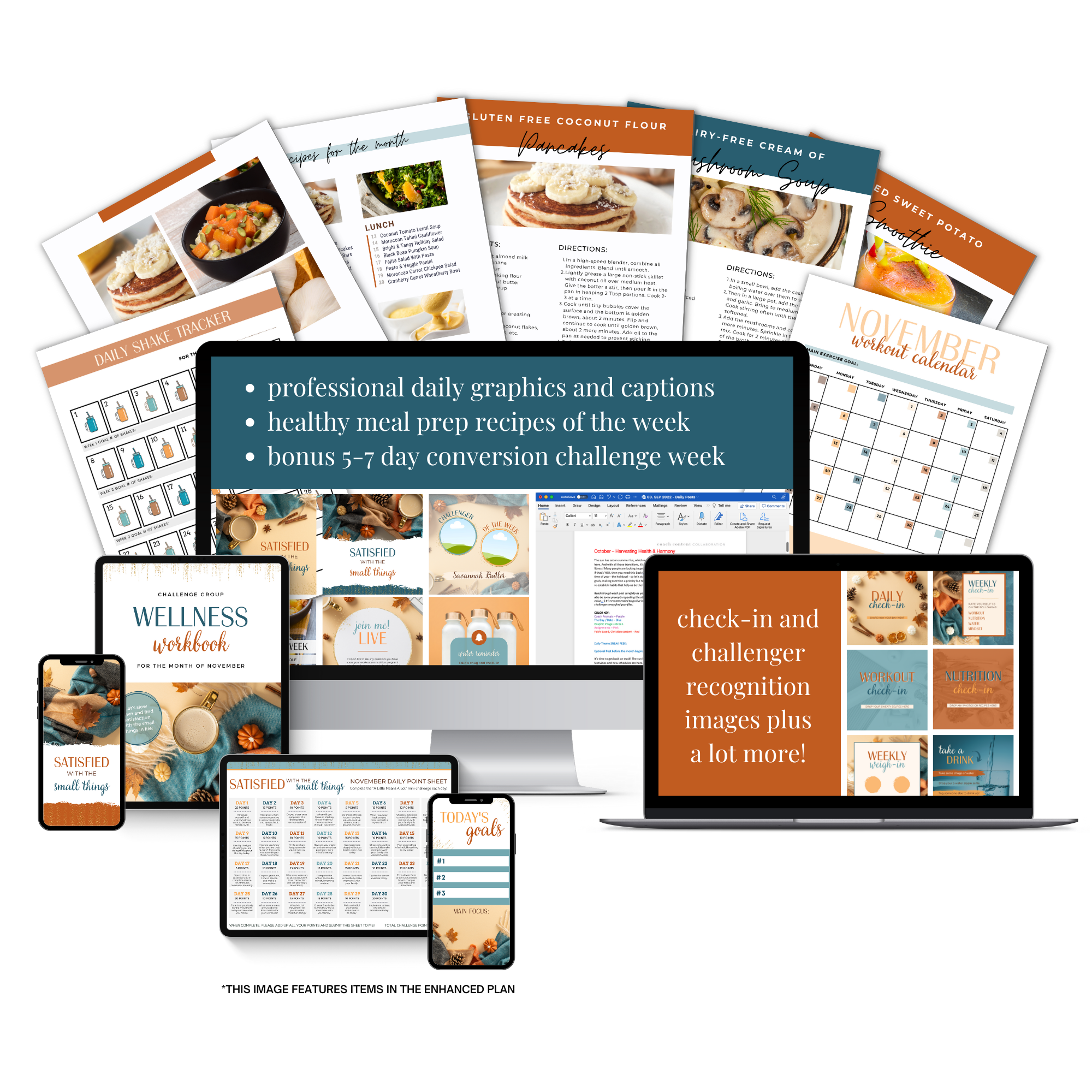 We LOVE creating more time and space for health and fitness coaches! We provide daily content to post, images created in Canva that you can customize to your own branding, workbooks and trackers so your group can stay on track, recipes, calendars, and so much more! Our hope is that by using our content, you can spend more time on what matters most in your business - supporting clients, finding new customers, and loving your life! Be prepared to get all your new people started and existing clients re-ignited for a new month. Let us do the heavy lifting for you to make those connections with your people, and enjoy the holidays with your loved ones!