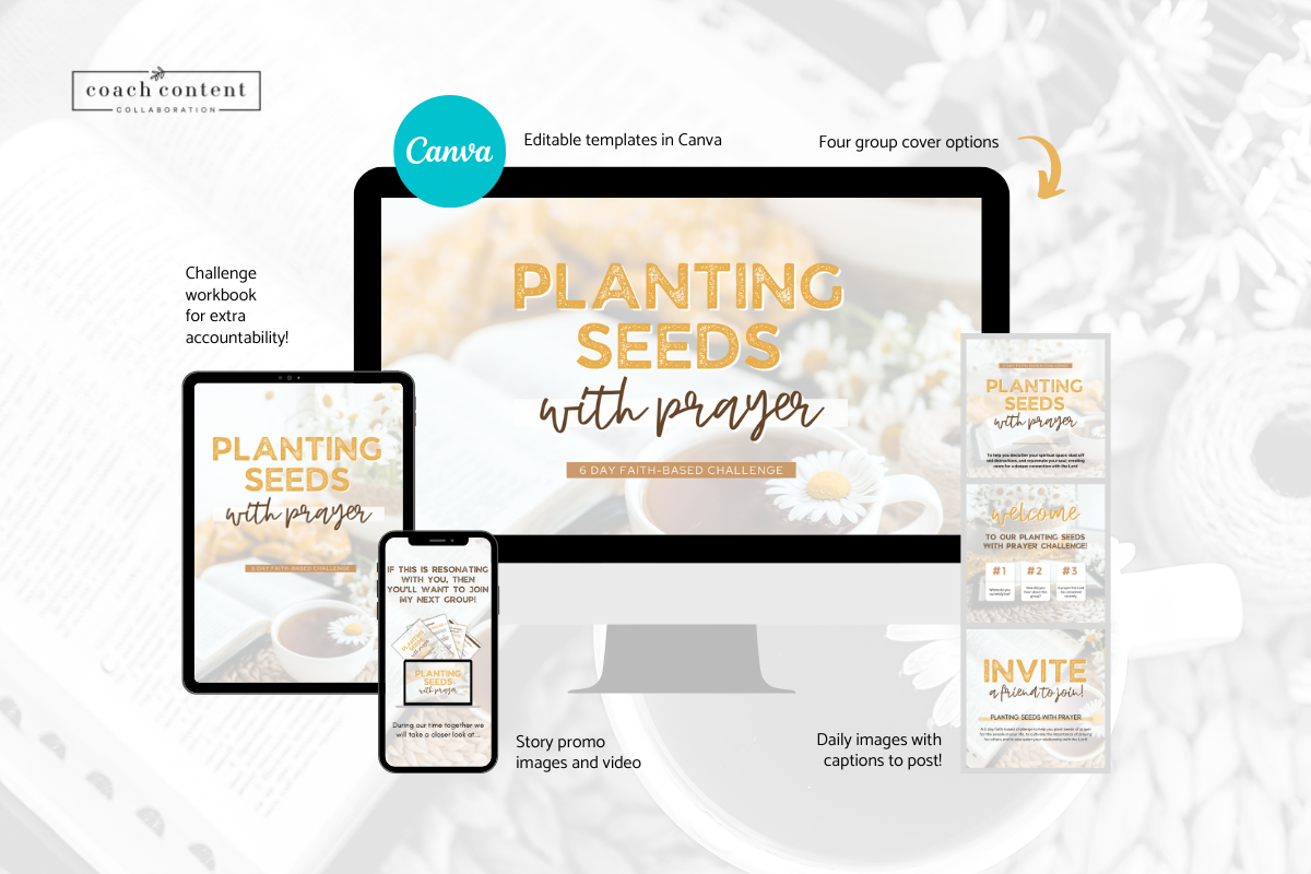 With this 6 day done-for-you faith-based challenge group guide it will help you and your clients plant seeds of prayer for the people in your life, to cultivate the importance of praying for others, how to pray for your enemies and to also water your relationship with the Lord.