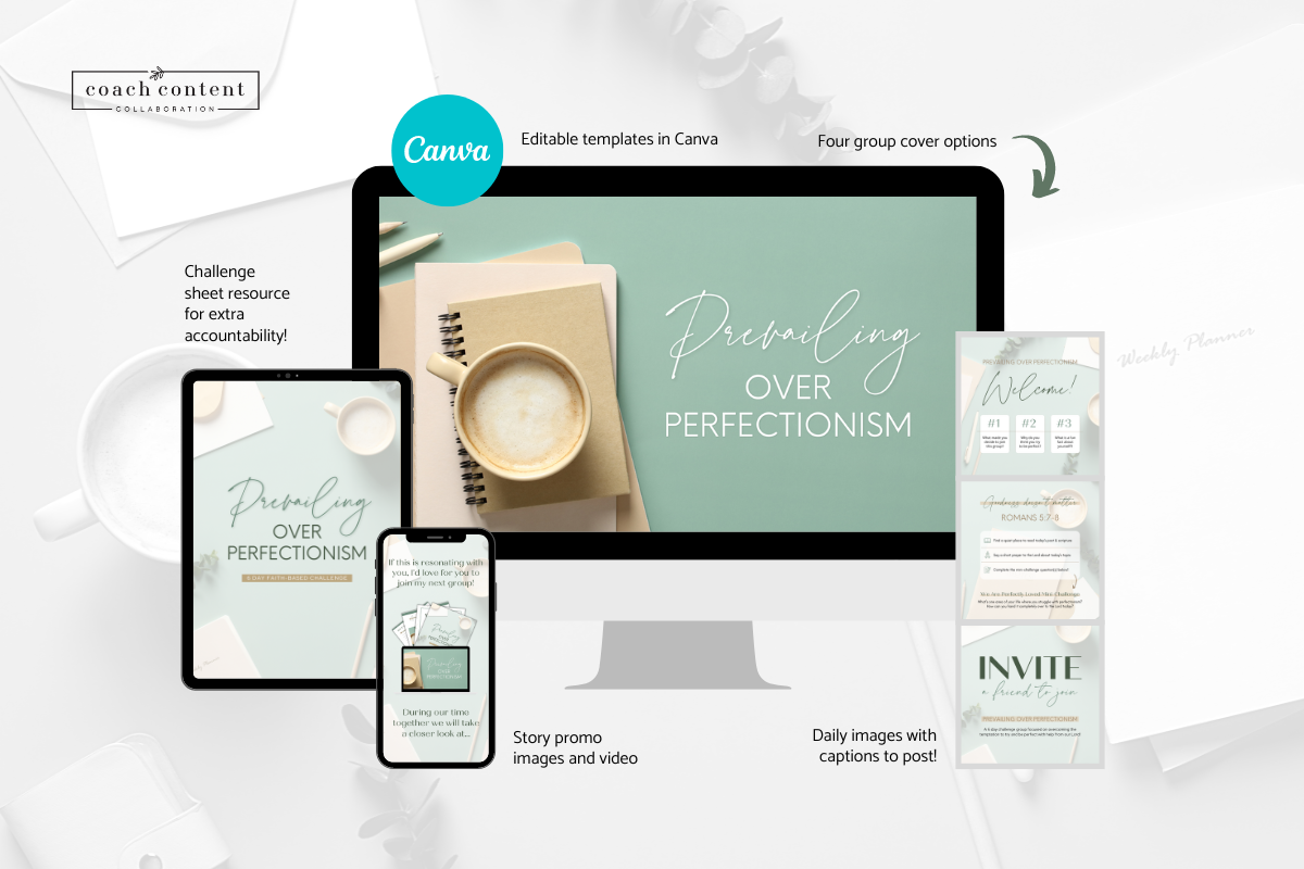With this 6 day done-for-you faith-based challenge group guide you will help your clients talk about the problem with perfectionism, what the Word says about it, what God thinks about us and how we can begin to let perfectionism go so we can truly rest in Him!