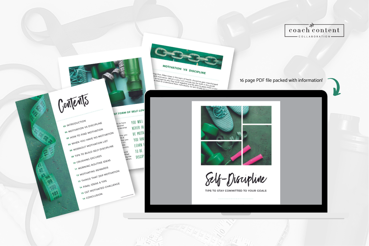 A digital file that you can use as a freemium with email or client sign-up or even just as a great additional resource for your challenge groups. Another important tool for challengers to succeed on their health & fitness journey is also by understanding the vital importance of working on their self-discipline because they won't always be motivated!