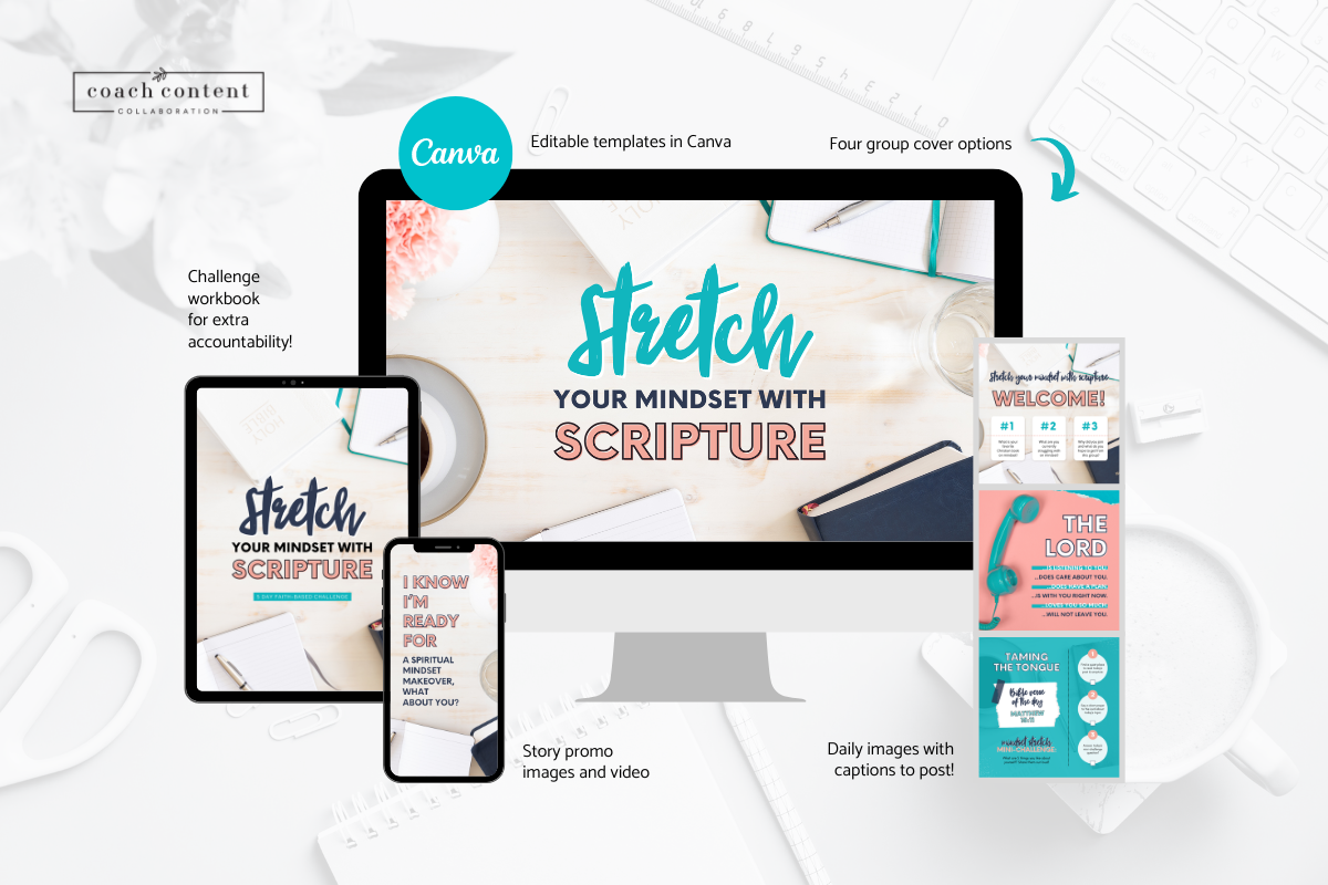 There are daily caption posts, daily images, cover images, story invite images and a group guide. You can use this as additional value to your current accountability group, as a free challenge to expand your network or run as a secret conversion challenge to convert prospects over to your paid program or paid coach membership.